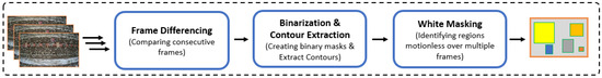 To enhance detection accuracy and minimize false positives, the system employs an object size filtering strategy based on the expected size of chickens at various growth stages. Detected contours (stationary objects) from the CCTV footage are evaluated to ensure they align with the anticipated dimensions of the chickens. Through the empirical analysis of the dataset, a minimum area threshold of 200 pixels and a maximum area threshold of 800 pixels were determined. These thresholds correspond to the approximate sizes of chickens across different growth stages, taking into account variations in posture and viewing angles observed in the footage.