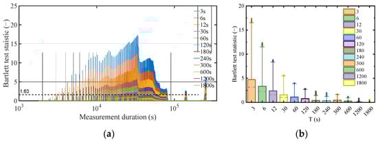 Bartlett’s test is a common method for examining the null hypothesis that the data come from white noise [40]. To calculate the Bartlett’s test statistic B and p-value, the formula is as follows: