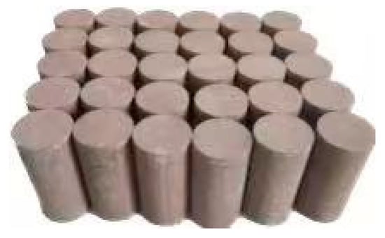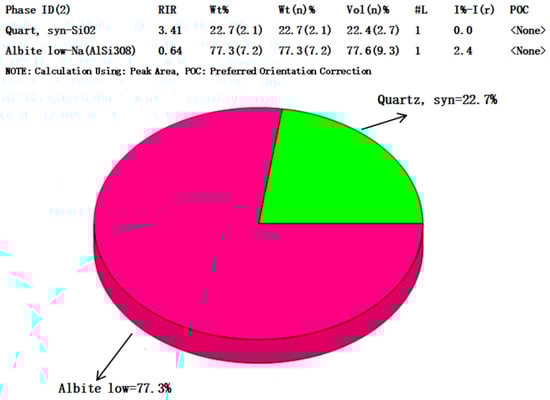 The test material was selected from the sandstone inside a high-temperature, water-rich tunnel in Southern Tibet. The surface of the sandstone showed no obvious cracks. According to diffraction composition analysis, the main components of the sandstone are quartz (22.7%) and feldspar (77.3%), as shown in Figure 1. The sampling and preparation process strictly followed the “Rock Physical and Mechanical Property Test Specification” (DZ/T0276.18-2015 []). The sandstone was processed into cylindrical specimens with a diameter of 50 mm and a height of 100 mm. The flatness error of both ends of the specimen was ±0.02 mm, and the deviation of the end faces from perpendicularity to the axis was less than 0.001 radians, as shown in Figure 2.