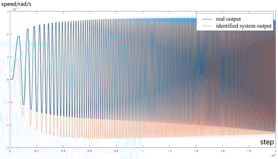 - Here, x(t) denotes an n-dimensional state vector, A is the system matrix, B represents the control matrix, denotes the speed command, C stands for the output matrix, D indicates the direct transfer matrix, and y(t) symbolizes the motor speed. Figure 6 illustrates the system output obtained by applying the same swept frequency signal input to both the actual and identification systems, as referenced in prior work [30].
