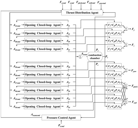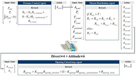 - Thrust Distribution: The thrust distribution agent at the middle level allocates the opening commands to each valve according to the thrust command.