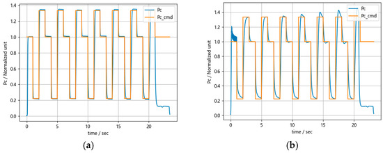 The trained model of the aforementioned multi-agent system was tested under the typical conditions shown in Figure 2, tracking the pressure and thrust commands. The conditions were designed as follows: