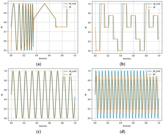 In step curve tracking, the reinforcement learning algorithm controlled overshoot effectively, keeping it below 1% in all scenarios. The full-stroke step response time was ≤40 ms. For continuous curve tracking, the full-stroke 20 Hz amplitude attenuation was ≤40%, with a phase lag of 144°.