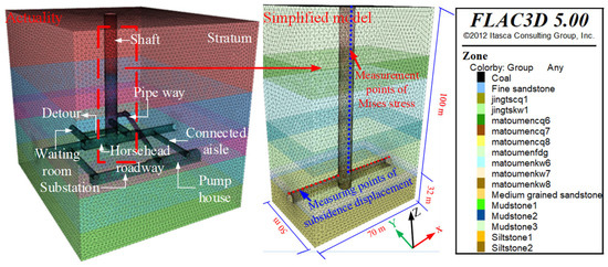 - Wu, F.; Qin, Y.P.; Xu, H.; Zhang, F.J.; Chu, X.Y. Numerical simulation of deformation and failure mechanism of main inclined shaft in Yuxi coal mine, China. Appl. Sci. 2022, 12, 5531. [Google Scholar] [CrossRef]