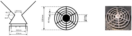 Figure 2. Dimensions of the throat of the gasifier and the interchangeable grid located underneath the reducer cone. Source: own elaboration. - Increase in the diameter of the grid from 220 mm up to 280 mm by adding an additional ring;