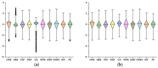 Figure 14a–d are more dispersed and far from the red line, indicating that the model prediction effect is poor. In