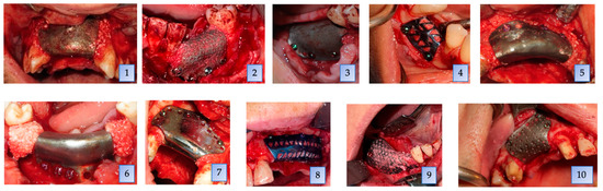 - Sumida, T.; Otawa, N.; Kamata, Y.; Kamakura, S.; Mtsushita, T.; Kitagaki, H.; Mori, S.; Sasaki, K.; Fujibayashi, S.; Takemoto, M.; et al. Custom-made titanium devices as membranes for bone augmentation in implant treatment: Clinical application and the comparison with conventional titanium mesh. J. Cranio-Maxillofac. Surg. 2015, 43, 2183–2188. [Google Scholar] [CrossRef] [PubMed]
