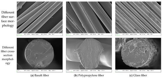 There are significant differences in the cross-sectional state of the three fibers. The cross-sectional shape of basalt fiber and glass fiber is a regular circle, but there are many fine chips in the cross-section of glass fiber, which may be produced during the processing of fiber. The cross-section of polypropylene fiber is deformed and irregular, which may be caused by the soft texture of polypropylene fiber.
