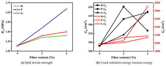 Through IDT, the influence of different fiber types and content on the crack resistance of the mixture was explored. The test results are shown in Figure 7, Figure 8 and Figure 9.