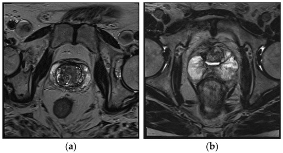MRI image samples of PCa dataset: (a) benign and (b) malignant.