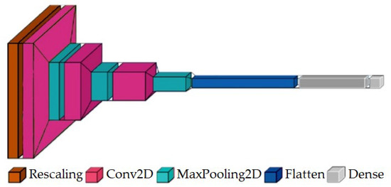 In this study, instead of using pre-built CNN architectures, the Sequential model was employed to create the basic model. One of the main reasons for this choice is the small size of the dataset, which contains only two classes. In such cases, using more complex architectures like VggNet, DenseNet, or ResNet can lead to unnecessary computational overhead and an increased risk of overfitting. Additionally, the Sequential model’s advantages in rapid prototyping and development proved highly beneficial for achieving results within a short timeframe. Its straightforward and understandable structure accelerated the development process, enabling faster testing and verification. The structure of the Sequential model, which incorporates both classification and feature extraction stages, is illustrated in Figure 2.