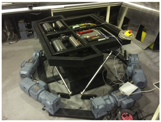 Additionally, it can be interesting to conduct this study with the motorized base integrated into our already constructed six-degree-of-freedom (6DOF) motion platform, which can be seen in Figure 6. This setup allows for the simulation of more complex and realistic movement dynamics, including pitch, roll, and yaw, which could further enhance the immersion and realism of the virtual environment. By incorporating a 6DOF platform, we can investigate how multi-axis movement affects user performance, sense of presence, and overall experience. This study could provide valuable insights into the potential benefits and challenges of using advanced motion platforms in VR systems for wheelchair users, potentially leading to even more effective and engaging rehabilitation and training applications.