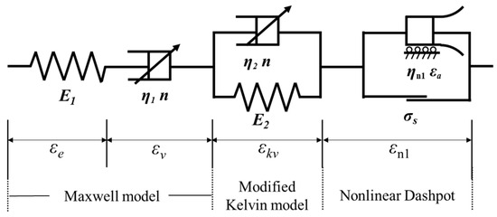 ε t = σ E 1 + σ η 1 t n Γ 1 + n + σ E 2 σ E 2 E n E 2 η 2 t n ( σ < σ s   and   σ σ s , ε < ε a ) σ E 1 + σ η 1 t n Γ 1 + n + σ E 2 σ E 2 E n E 2 η 2 t n + σ 2 η n 1 t t | ε = ε a 2 ( σ σ s , ε ε a )