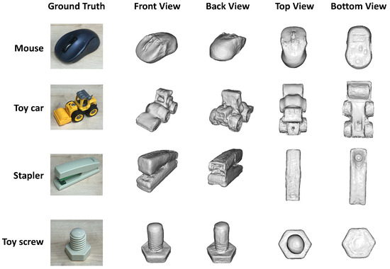 In 3D modeling, traditional methods based on sensors, such as LiDAR [7,8] or structured light sensors [9,10], have been used for 3D reconstruction of novel objects. These high-cost sensors capture detailed depth information and are capable of reconstructing fine geometry. However, these methods often necessitate changes in various settings and configurations during the reconstruction process, leading to inevitable human intervention and increased complexity.
