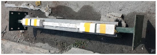 Further, the rubber components were fitted carefully in the considered gap between the steel divider and concrete (6). The difference between the rubber shapes is due to the main core dimensions. Since it has a steel plate as the main core (plastic part) and two hollow sections (as elastic parts) on both sides, one set of rubber components has the dimension of the main core (plastic part), and the other set is based on the steel hollow section core (elastic part).