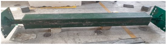 The steel hollow section (7) has the role of restraining the whole device. Steel caps (7) were added to both ends of the steel tube restrainer to take the imposed transferred force and not pull out the core during testing. In the last step, steel support heads (8) were situated at both ends of the device to fix the device to the actuator head and support. The final figure of the proposed RBRB after assembling all steps is presented in Figure 1b.