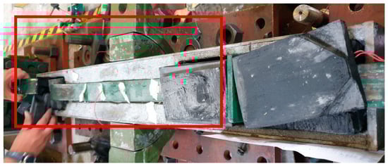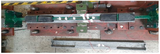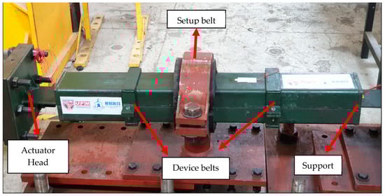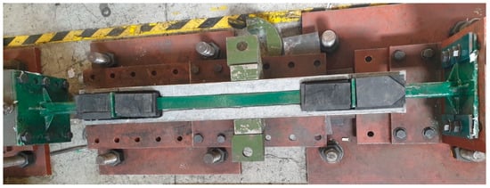 Due to the dynamic actuator’s limitations, the maximum elongation considered for prototype testing had to be within 150 mm. Therefore, it was necessary to determine the steel core elongation value within this range (with an ultimate force capacity of 300 kN). Based on the aforementioned values, the sample with dimensions of 6 × 25 × 420 mm was selected due to its compatibility with the dynamic actuator’s maximum displacement limitations. The 6 mm sample reached a displacement of 73 mm. Considering the UTM limitation, all samples were cut in half, necessitating doubling the deformation value in calculations. Consequently, a maximum sample displacement of 150 mm was determined to be appropriate, ensuring that the device would fail before reaching the actuator’s maximum displacement.