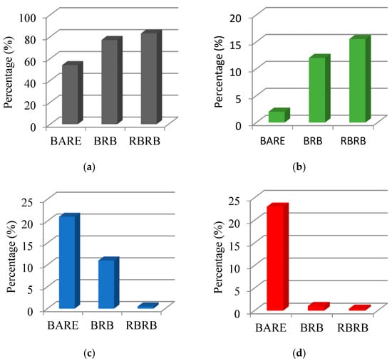 As singular members, BRBs illustrated high energy dissipation ability in the case of hysteretic behavior with full, stable loops [12,13]. Various core section configurations, restrainers, and materials have been tested [14,15]. The results showed that when mortar was chosen as a restrainer filler in BRB and the core element shape was rectangular or cruciform, mild or low-yield steel was formed. Also, common failure modes have been investigated, such as global buckling of the brace [16,17]; core local buckling, which happens as a result of higher modes of failure [18,19]; and buckling in un-bound zones of BRB like both ends of a device, where the core is not efficiently restrained [20]. Some other failure origins are cumulative plastic ductility [21,22], connections, and joints [10,23,24]. If it is not possible to control these failures, they may have a significant effect on the structure of global response [24].