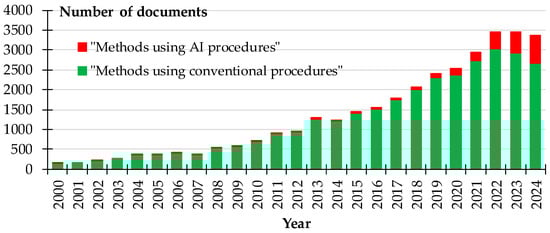 Published studies (in Scopus) researching new methods of seismic vulnerability assessment and retrofitting or rehabilitation of existing structures using conventional or AI procedures after the year 2000 [source: Scopus database: https://www.scopus.com/ (accessed on 24 November 2024)].