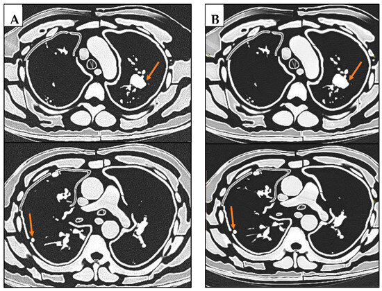 - Guo, X.; Jia, D.; He, L.; Jia, X.; Zhang, D.; Dou, Y.; Shen, S.; Ji, H.; Zhang, S.; Chen, Y. Evaluation of ultralow-dose computed tomography on detection of pulmonary nodules in overweight or obese adult patients. J. Appl. Clin. Med. Phys. 2022, 23, e13589. [Google Scholar] [CrossRef]