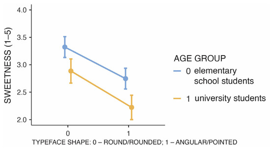 Effects of typeface shape and age group on ratings of typeface imagined sweetness.