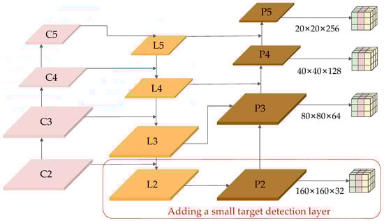 Diagram of the feature fusion structure with the addition of a small target detection layer.