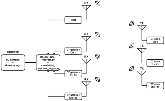 - Joosens, D.; BniLam, N.; Berkvens, R.; Weyn, M. Implementation of a Multi-Channel DASH7 IoT Communication System for Packet Investigation and Validation. In Proceedings of the GNU Radio Conference 2024, Knoxville, TN, USA, 16–20 September 2024. [Google Scholar]