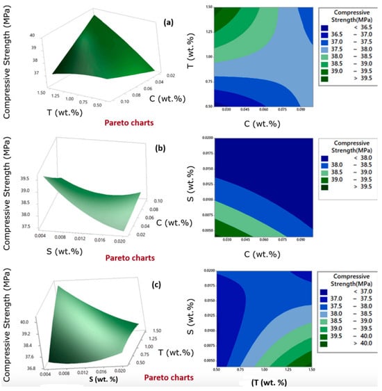 Nayim et al. investigated the tribological and mechanical properties of aluminum matrix composites reinforced with CNTs and titanium carbide (TiC), prepared using the stir casting process []. In the initial (100% aluminum) composition (AlCTS02), only a few particles of CNTs and TiC were visible at 100× magnification. However, as the reinforcement content (wt% of CNT and wt% of TiC) increased in subsequent compositions (AlCTS03-AlCTS05), more particles were observed with uniform dispersion. According to the authors, higher reinforcement contents contributed to enhanced mechanical and tribological properties of the composites, as seen in Figure 11. The study investigated wear behavior using dry sliding pin-on-disc equipment with varying loads (10 N, 20 N, 30 N, and 40 N). The wear rate dropped dramatically as the concentration of CNTs increased. For instance, when 40N force was applied, AICTS01 had a wear rate of ~0.038 , whereas AICTS05 had a wear rate of ~0.006 , which is an 84.2105% decrease [].