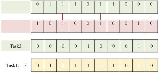 When selecting a batch of tasks, different tasks may have an impact on the same data records, and this phenomenon shows the marginal decreasing effect, in which the input of a task has a great amount of benefit to start with but then this benefit gradually decreases when it reaches a certain point. In order to save costs, this paper proposes a task set selection method based on the benefit state, as shown in Figure 5, using an array to maintain the current benefit state for each task in order to refresh the benefit array. We discard task 2 after the conflict between the benefits of task 2 and task 1, and there are no conflicts between task 3 and task 1. Finally, we obtain the benefit state of task 1 and 3 to reduce the labor cost in each batch of tasks as much as possible.