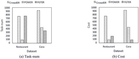 Entity resolution (ER), also called duplicate detection, aims to identify records that reference the same real-world entity, is an important task for data integration and data cleaning, and is a long-term challenge in the fields of database management, information retrieval, machine learning, natural language processing, and statistics. With the rise of big data in artificial intelligence, research on it requires not only theory but also the support of large amounts of data, so the information carried by the data cannot be ignored [1]. Since the 1950s, entity resolution has made tremendous progress in research [2,3,4,5] and has also progressed with the development of society [5,6,7,8]. The advantage of crowdsourced entity resolution over other entity resolution methods is that it leverages human intelligence to obtain better-resolution results. Similar to crowdsourced entity resolution is active-learning-based entity resolution [9,10,11], which also relies on manual labeling to achieve the purpose of entity resolution. The difference is that the latter usually needs to train a machine learning or deep learning model, which requires a batch of labeled data to train the initial model at the beginning, then refine the model by selecting other data to be labeled, and use the trained model to perform entity resolution, while the crowdsourced approach performs entity resolution directly. Crowdsourced entity resolution has more general applications and is more suitable for small- and medium-sized datasets to meet the needs of different people, while active-learning-based entity resolution is more suitable for fulfilling large scale requirements.