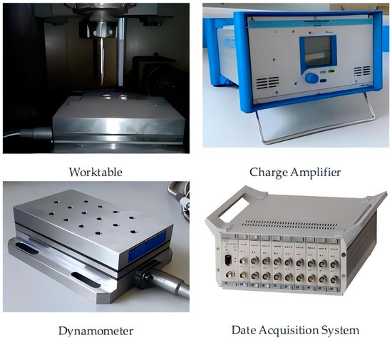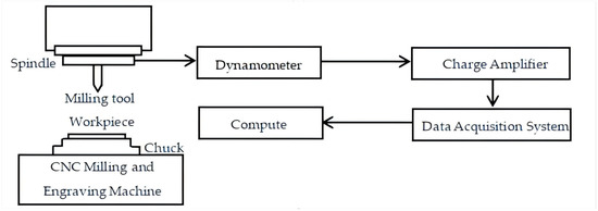 The CNC engraving and milling machine, designated as the SXDK6050D model and manufactured by Taizhou Samsung Machine Tool Manufacturing Factory (Taizhou, China), is renowned for its outstanding precision and high-efficiency performance. This machine is widely applied in mechanical processing, mold manufacturing, and various other industrial fields. Its operational stroke dimensions measure 600 mm × 500 mm × 240 mm, sufficiently meeting the machining demands of diverse workpieces. The dynamometer utilized is the Kistler model 9257B, a high-performance sensor specifically designed for dynamic measurement and monitoring of mechanical parameters during milling operations. This sensor provides precise data, facilitating process optimization and enhancing product quality. Furthermore, the charge amplifier employed is the Kistler model 5070A1210, which cooperates with the dynamometer to enhance signal processing capabilities. In addition to signal amplification, the charge amplifier provides essential support for impedance matching and noise suppression during the milling force measurement process, thereby ensuring the accuracy and reliability of subsequent data acquisition.