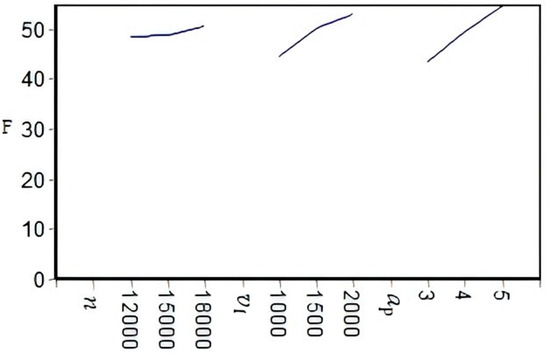 The milling performance during the machining process is notably influenced by a diverse array of milling parameters. Table 8 precisely presents the alterations in the milling force, F, under the different spindle speed, n, feed rate, vf, and axial milling depth, ap.