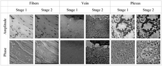 We further collected a variety of samples such as fibers, human vein cells and plexus. Moreover, we compared their reconstruction results in the two stages of the SFPT, as illustrated in Figure 6. As shown in Figure 6, the supervised learning in the second stage effectively enhances the visual fidelity of the reconstructed amplitude and phase. The clearer phase reconstruction accurately reflects the refractive index distribution of the cells, thereby indirectly revealing cellular metabolic activity, pathological states, and physiological processes such as proliferation or apoptosis.