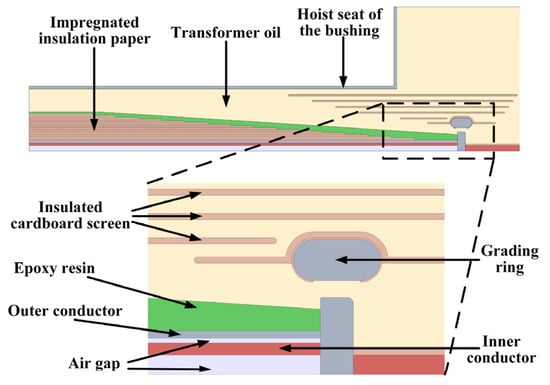 - Wang, Q.; Wang, H.; Peng, Z.; Liu, P.; Zhang, T.; Hu, W. 3-D Coupled Electromagnetic-Fluid-Thermal Analysis of Epoxy Impregnated Paper Converter Transformer Bushings. IEEE Trans. Dielectr. Electr. Insul. 2017, 24, 630–638. [Google Scholar] [CrossRef]