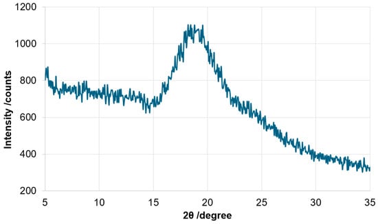 Figure 3 presents the PXRD pattern of SBECD, which reveals only one broad peak centered in the 18.20–19.55° interval (with maximum intensity at 18.20°), indicating the amorphous nature of the sample, even if this cyclodextrin contains in the structure a saline sulfone–sodium ionic moiety.