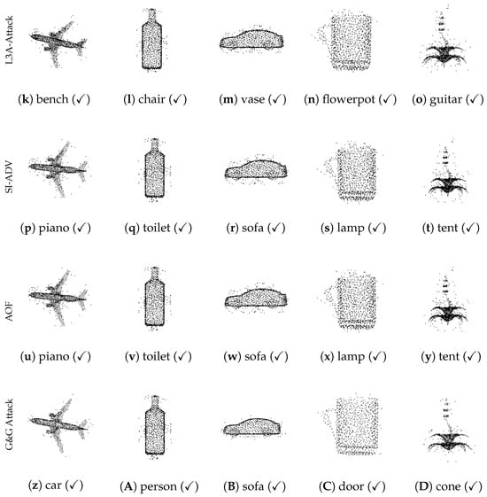 - Hamdi, A.; Rojas, S.; Thabet, A.; Ghanem, B. Advpc: Transferable adversarial perturbations on 3d point clouds. In Proceedings of the Computer Vision–ECCV 2020: 16th European Conference, Glasgow, UK, 23–28 August 2020; Proceedings, Part XII 16. Springer: Cham, Switzerland, 2020; pp. 241–257. [Google Scholar]