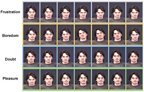 In the development of emotion modeling, scholars gradually found that the basic emotions summarized by Ekman and others are not closely related to the cognitive learning process [50]. Psychologists have found that what affects human cognitive processes and the performance of tasks are “boredom” [51], “doubt” [52], “pleasure” [53], “frustration” [54], “concentration” [50], and “surprise” [55], which are defined as cognitive emotional states [56,57].