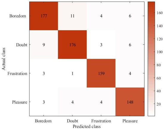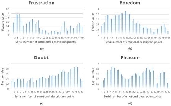 McDaniel [58] and Rodrigo et al. [59] found that the 4 cognitive emotions of “doubt”, “pleasure”, “boredom”, and “frustration” appeared most frequently. Baker et al. [58] conducted experiments on cognitive emotions during tasks, and the statistical results showed that the above 4 emotions accounted for more than 90% of the whole cognitive process.