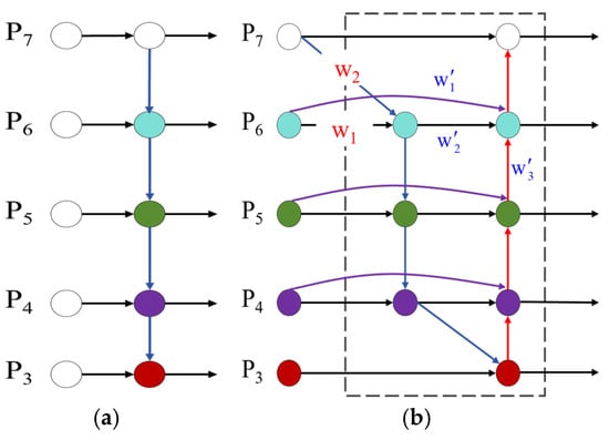 The BiFPN structure is shown in Figure 10b. BiFPN considers each bidirectional path as a feature network layer. The normalized weight ŵi is obtained for the ith input feature map weight parameter wi. The normalized weights are used to perform weighted fusion on the i input feature maps xi, and the weighted fusion feature map xf is obtained as