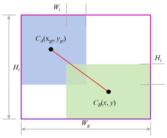 As shown in Figure 11, CB(x, y) represents the geometric center of the prediction box. As shown in Figure 11, CA(xgt, ygt) represents the geometric center of the target box, Wg and Hg represent the width and height of the minimum outsourced rectangular box, preventing the anchor box loss RWIoU from producing gradients that hinder convergence. “*” denotes a split operation. RWIoU, a reweighted IoU loss, dynamically adjusts weights to address the adaptability issues for different types of samples in the loss function. By combining these two types of loss functions, the optimization of various aspects of the predicted bounding box performance is achieved, resulting in a more robust loss function, LWIoUv1.