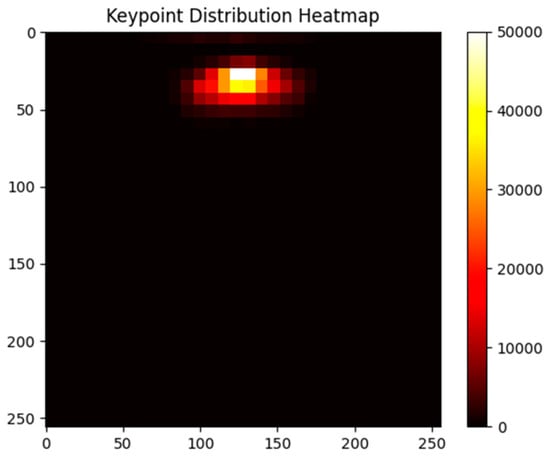 Figure 2. Distribution heatmap of the original keypoint.This step constructs an initial element candidate set Set1 based on the coordinates with higher heat in the graph and establishes a mapping relationship between the elements in this set and the binary encoding. Subsequently, a binary string of length L1 is intercepted from M′, and the initial element s1 is selected based on the mapping relationship and added to the sequence S. The calculation formula for Li is: - Step 3.