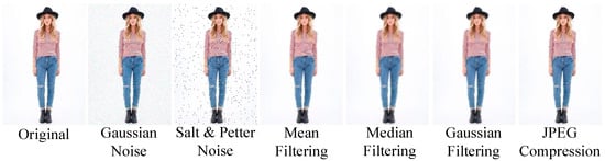 - Liu, Z.W.; Luo, P.; Qiu, S.; Wang, X.; Tang, X. DeepFashion: Powering Robust Clothes Recognition and Retrieval with Rich Annotations. In Proceedings of the IEEE Conference on Computer Vision and Pattern Recognition, Las Vegas, NV, USA, 26 June–1 July 2016; pp. 1096–1104. [Google Scholar]