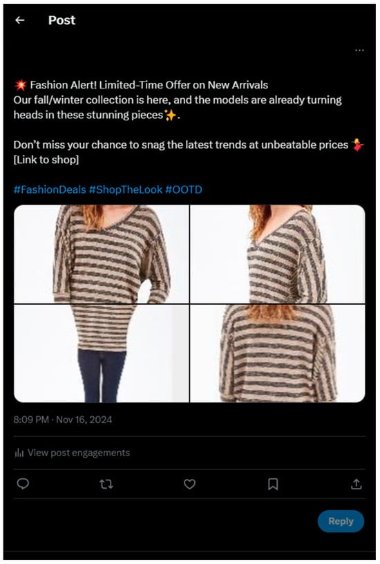We designed a visualization scenario to demonstrate the proposed method’s practical application by embedding stego-images into real-world contexts. Specifically, these stego-images were integrated into promotional tweets, akin to those used by fashion brands for marketing campaigns.