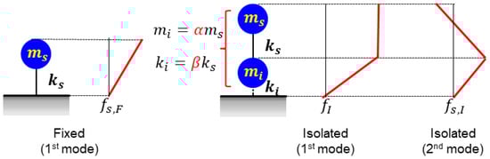 SDOF and 2-DOF mode shape of fixed and seismic isolation system.