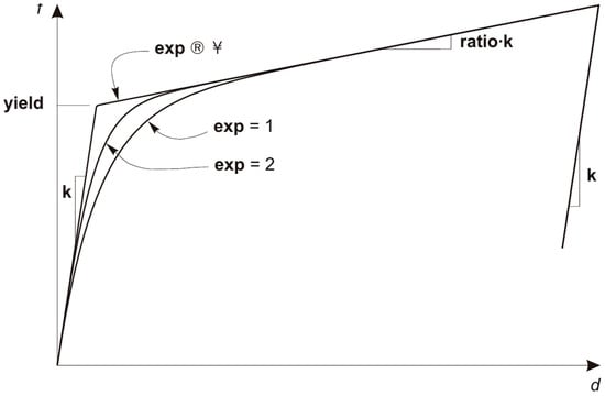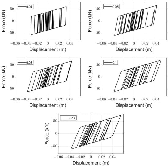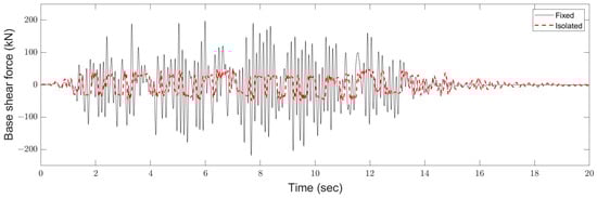 In addition, for a comparison between the bilinear and Bouc–Wen models, the exponent that determines the sharpness of the yield point was modeled with a different exponent (Table 1, Figure 7). The results of the modal analysis of the fixed and isolated structures are presented in Figure 6, and as expected, the second mode frequency of the isolated structure was found to be slightly larger than the first mode frequency of the fixed structure.