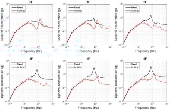 - Because of the seismically isolation system, the natural frequency corresponding to the deformation mode of the isolated superstructure becomes larger than the natural frequency of the fixed structure. Therefore, the peak of the spectral acceleration occurs at the shifted frequency. In addition, the response occurred larger at the stories far away from the middle story, which is the center of rotation of the structure.
