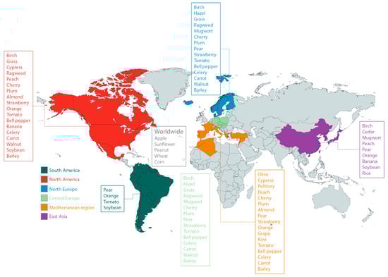 - Popescu, F.-D. Cross-Reactivity between Aeroallergens and Food Allergens. World J. Methodol. 2015, 5, 31–50. [Google Scholar] [CrossRef] [PubMed]