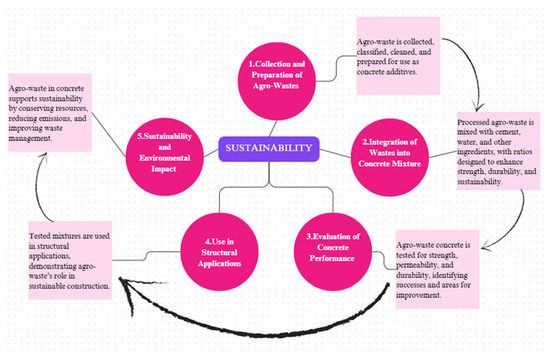 Agro-waste recycling is a significant approach to reducing the carbon footprint of construction materials. When considered alongside other carbon-reduction strategies, such as the use of low-heat cement and geo-polymer alternatives, it becomes evident that these approaches collectively contribute to a more sustainable construction industry. This integrative perspective highlights the potential of a multi-faceted approach to achieving carbon neutrality in the sector [28].