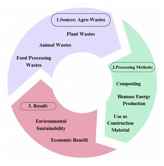 Agricultural land constitutes approximately 36% of the world’s total land area, indicating that many countries depend heavily on agricultural activities for their economy [2]. The production and processing of agricultural products generate plant and animal wastes, collectively referred to as agro-wastes (AWs). The recycling of these wastes is crucial for agricultural production and environmental sustainability [3]. In countries where agricultural activities are prominent, such as India, Brazil, China, Indonesia, and the United States, the feasibility of recycling these wastes and the opportunities it presents should be thoroughly assessed and managed, with appropriate methods applied to reduce waste at its source and convert it into reusable forms [4].