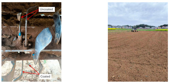 - Guan, G.; Fu, J.; Cui, Z.; Wang, S.; Gao, Q. Evaluation of the tribological and anti-adhesive properties of different materials coated rotary tillage blades. Soil Tillage Res. 2021, 209, 104933. [Google Scholar] [CrossRef]